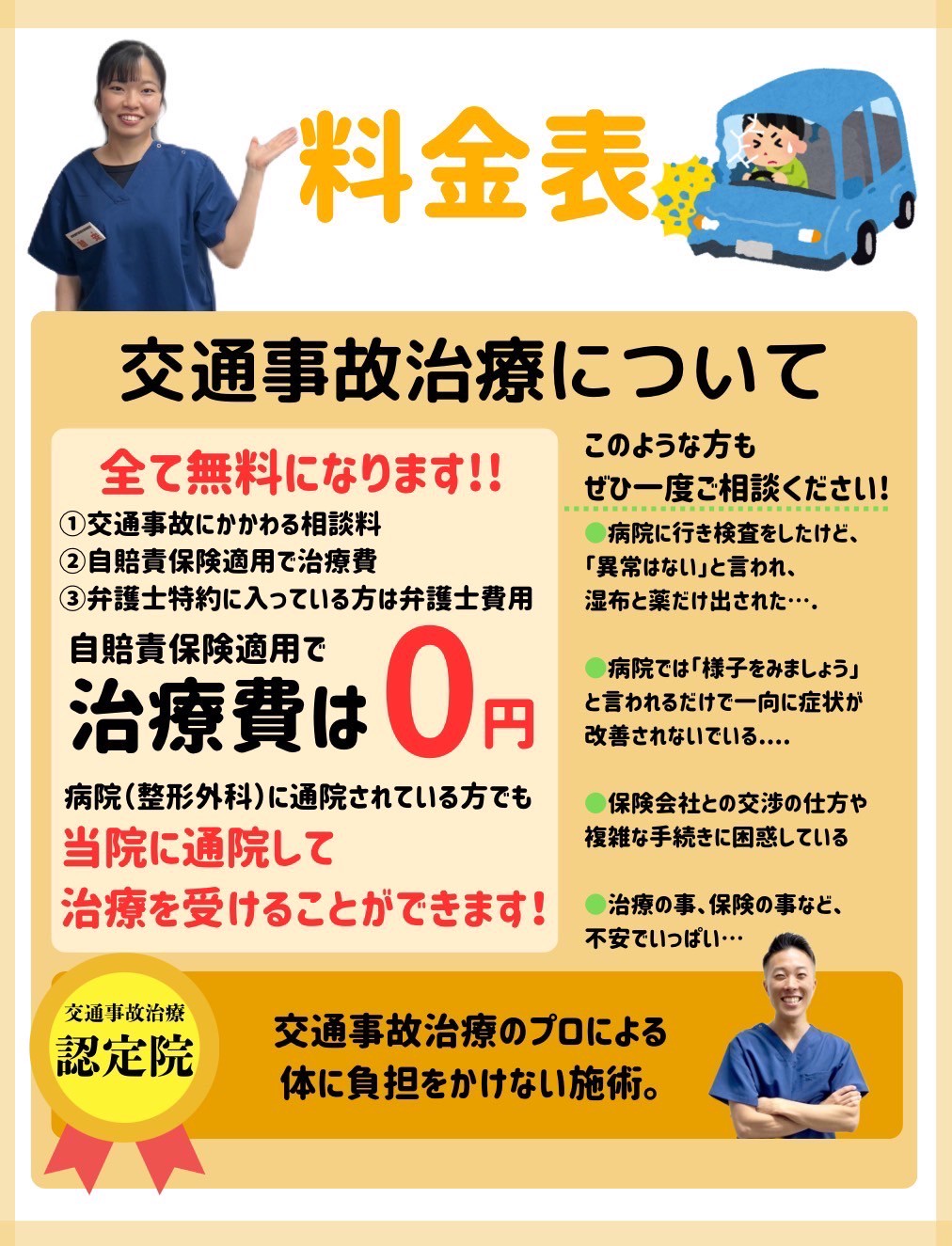 川越・新河岸たいよう整骨院で「交通事故専門施術」を受けましょう!
