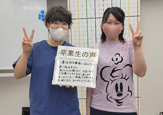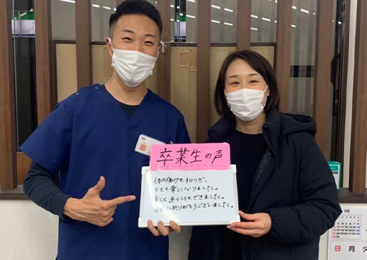 体の痛みも和らぎ、とても楽になりました。楽しく通うこともできました。本当にありがとうございました。